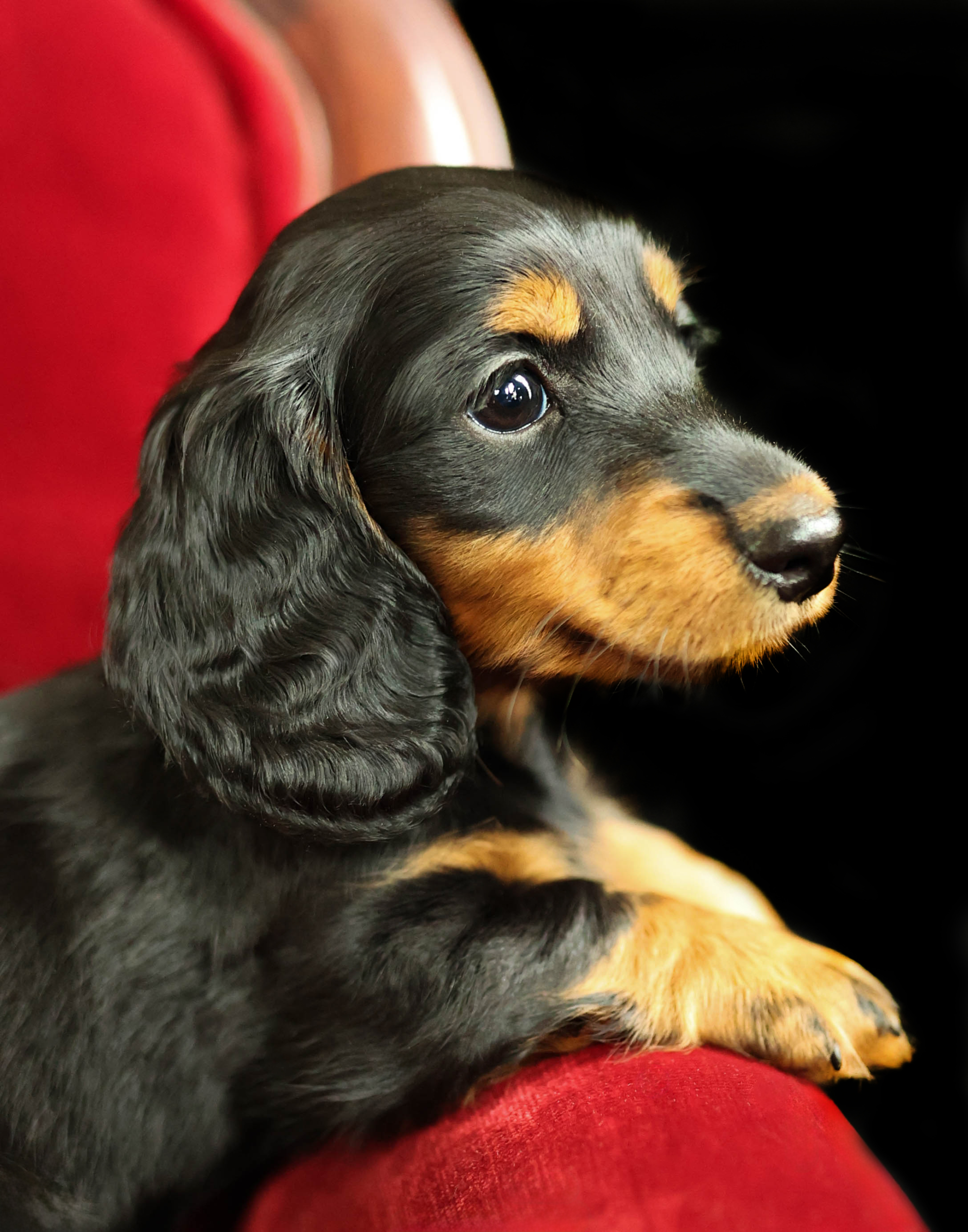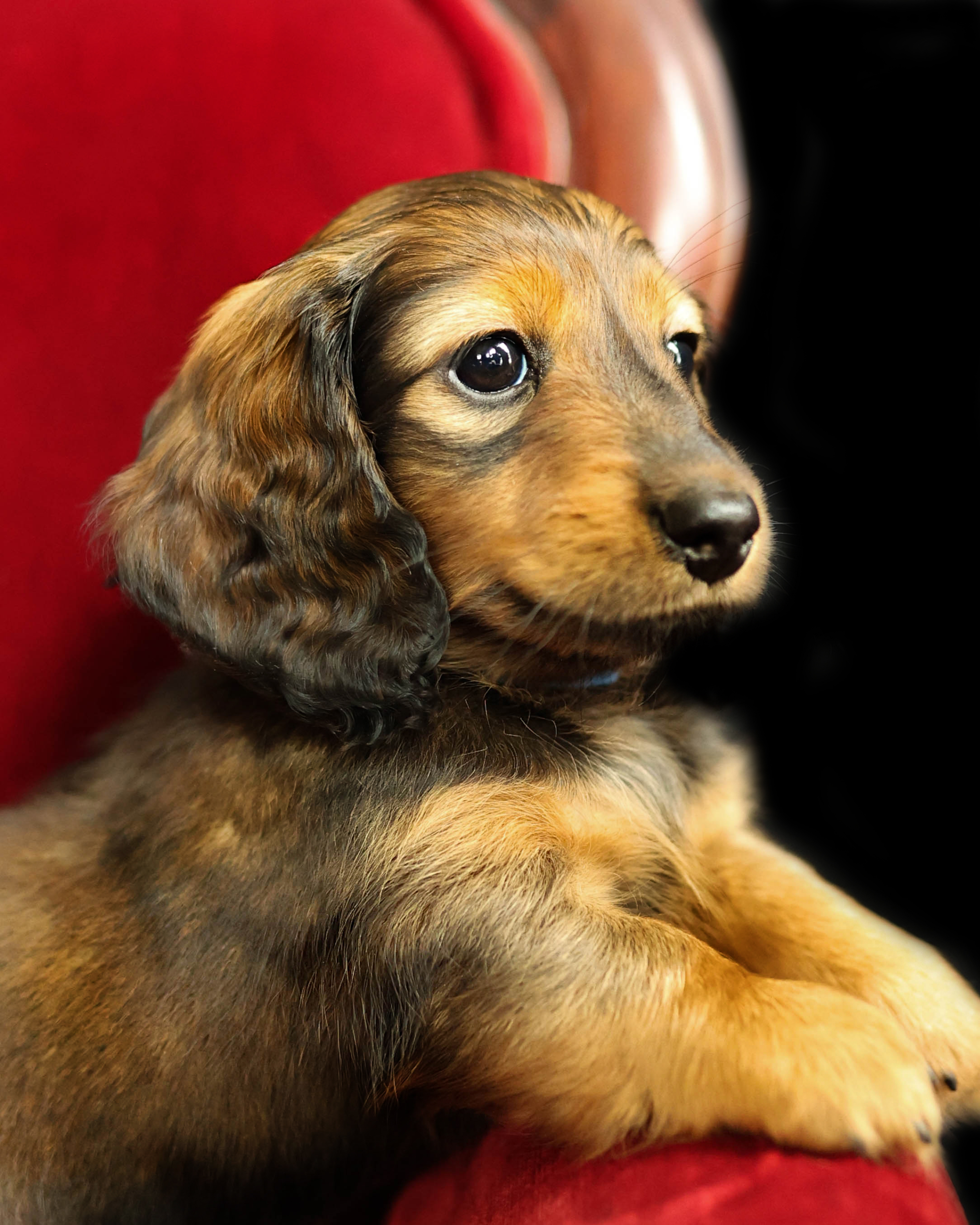 We take great care in raising our dachshund puppies and preparing them for their new homes. Our puppies are born, nursed, weaned, and raised inside our home, where they enjoy a clean and calm environment. They go for multiple veterinary exams, including their initial health assessment at three weeks old. Vaccinations are not given until the pups are seven to eight weeks old, when they are examined again to make sure they are in perfect health. Socialization is important in the early stages of a puppy’s life. We believe a lot of love and interaction, where puppies are gently handled every day, produces the best pet ever. We make sure that all pups meet our extended family, including our eight grandchildren, who adore them. These visits expose the pups to various voices, scents, and experiences. By the time the pups start toddling around, their tails are already wagging, waiting for the adventures of the new day. We also acclimate them to household sounds, such as vacuums, television, loud blenders, dropping of books, etc. This helps them adjust to the noise they will encounter once they join their new families. When pups are old enough, they go outside for daily play dates and often play with LaKota, the Husky next door. By the time they leave for their new homes, they love all dogs, large and small, as well as all people and children. This exposure produces pups that are comfortable around different individuals and situations.